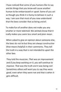 To make fun of another does not make you any smarter or more talented. We animals know that it really makes you seem less smart and plain mean.