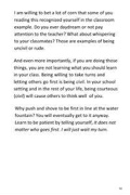 And even more importantly, if you are doing those things, you are not learning what you should learn in your class. Being willing to take turns and letting others go first is being civil. In your school setting and in the rest of your life, being courteous (civil) will cause others to think well of you.