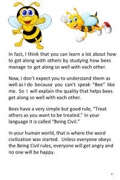 Bees have a very simple but good rule, “Treat others as you want to be treated.” In your language it is called “Being Civil.”