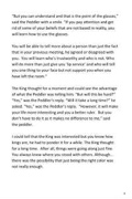 I could tell that the King was interested but you know how kings are, he had to ponder it for a while. The King thought for a long time. After all, things were going along just fine. You always knew where you stood with others. Although... there was the possibility that just being the right color was not really enough.