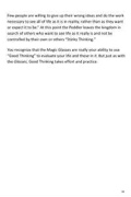 You recognize that the Magic Glasses are really your ability to use “Good Thinking” to evaluate your life and those in it. But just as with the Glasses, Good Thinking takes effort and practice.
