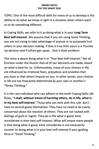 It is the rare individual who can adhere to the tenth Coping Skills Life Rules, “I shall, without intent of harming others, do in life, what is in my best self-interest.” Those who can stick with this rule don’t have to second-guess themselves. They have no need to be overly concerned about the reaction of others. They are not racked with feelings of guilt or regret. They do in life what is good, kind, considerate in their best self-interest. What will amaze many people is that doing what is good, kind, considerate is not necessarily counter to doing what is in your best self-interest if your guiding force is “Good Thinking.”