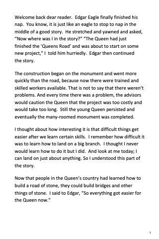Welcome back dear reader. Edgar Eagle finally finished his nap. You know, it is just like an eagle to stop to nap in the middle of a good story. He stretched and yawned and asked, “Now where was I in the story?” “The Queen had just finished the ‘Queens Road’ and was about to start on some new project,” I told him hurriedly. Edgar then continued