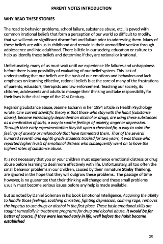 It is not necessary that you or your children must experience emotional distress or drug abuse before learning to deal more effectively with life. Unfortunately, all too often the small behavior problems in our children, caused by their immature Stinky Thinking, are ignored in the hope that they will outgrow these problems. The passage of time however, is no guarantee that their thinking will change and these small problems usually must become serious issues before any help is made available.