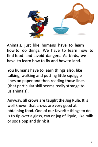 Anyway, all crows are taught the Jug Rule. It is well known that crows are very good at obtaining food. One of our favorite things to do is to tip over a glass, can or jug of liquid, like milk or soda pop and drink it.