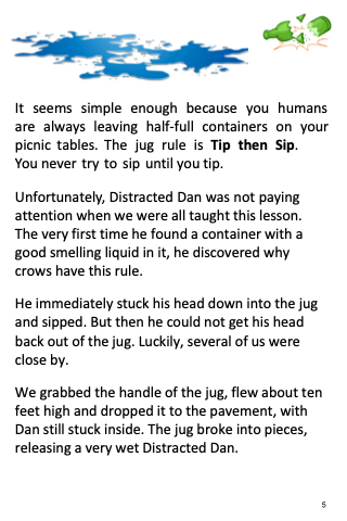 Unfortunately, Distracted Dan was not paying attention when we were all taught this lesson. The very first time he found a container with a good smelling liquid in it, he discovered why crows have this rule.