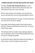 COSMOS EXPLAINS THE MAN WHO PLOWED THE DESERT