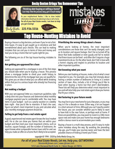 The following are six of the top house-hunting mistakes to avoid: