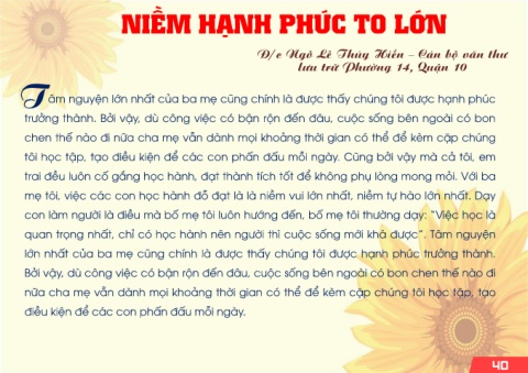 trai đều luôn cố gắng học hành, đạt thành tích tốt để không phụ lòng mong mỏi. Với ba
