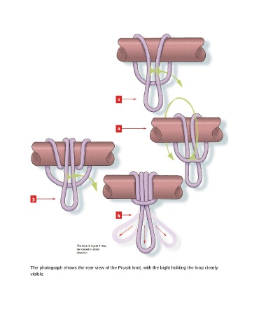 The photograph shows the rear view of the Prusik knot, with the bight holding the loop clearly visible.