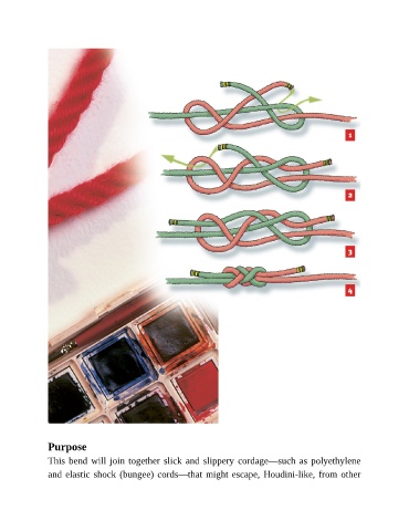 Purpose This bend will join together slick and slippery cordage—such as polyethylene and elastic shock (bungee) cords—that might escape, Houdini-like, from other