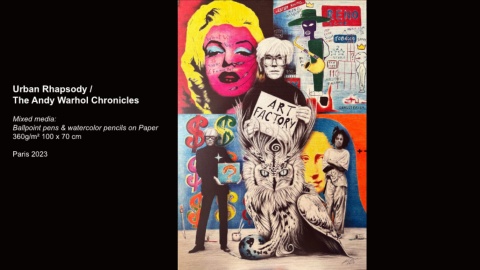 Urban Rhapsody / The Andy Warhol Chronicles Mixed media: Ballpoint pens & watercolor pencils on Paper 360g/m² 100 x 70 cm Paris 2023