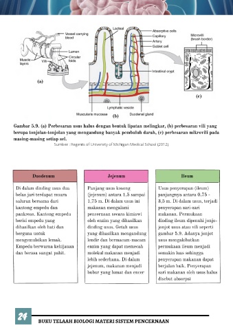 Gambar 5.9. (a) Perbesaran usus halus dengan bentuk lipatan melingkar, (b) perbesaran vili yang