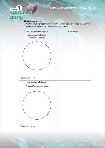 1. Gambar hasil pengamatan mikroskop Anda pada tabel berikut. Berilah