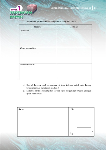 4. Buatlah laporan hasil pengamatan struktur jaringan epitel pada hewan