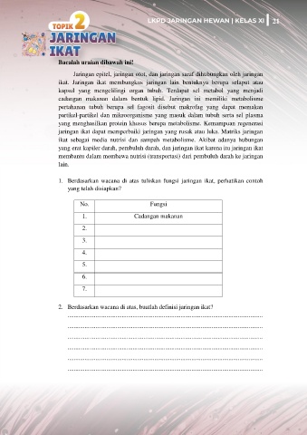 1. Berdasarkan wacana di atas tuliskan fungsi jaringan ikat, perhatikan contoh