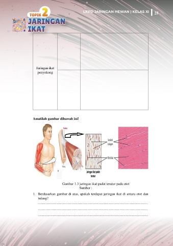 1. Berdasarkan gambar di atas, apakah terdapat jaringan ikat di antara otot dan