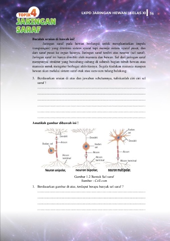 dari saraf pusat ke organ lainnya. Jaringan saraf terdiri atas neuron (sel saraf).