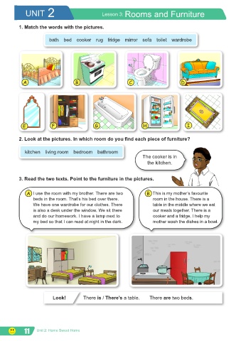 2. Look at the pictures. In which room do you find each piece of furniture?