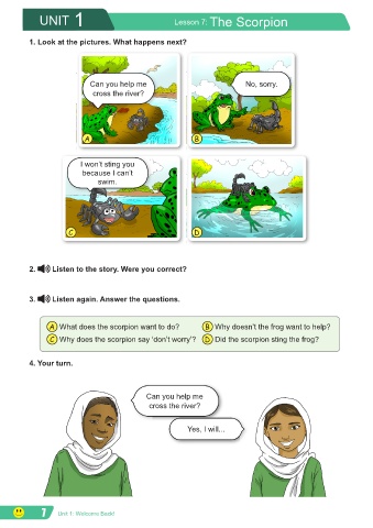 A What does the scorpion want to do? B Why doesn’t the frog want to help?
