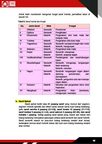 Untuk lebih memahami mengenai fungsi saraf kranial, perhatikan tabel di