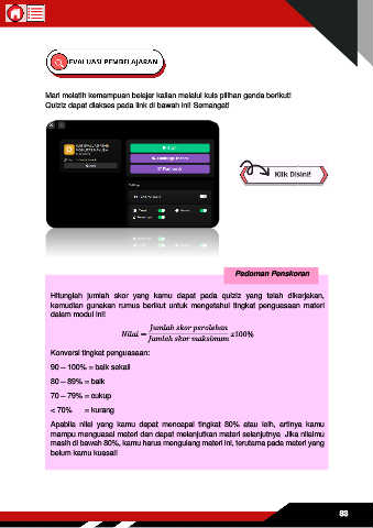 Apabila nilai yang kamu dapat mencapai tingkat 80% atau leih, artinya kamu