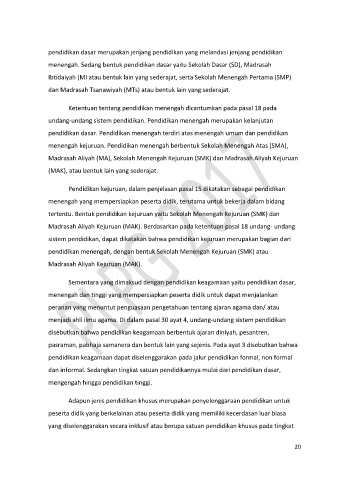 Madrasah Aliyah Kejuruan (MAK). Berdasarkan pada ketentuan pasal 18 undang- undang