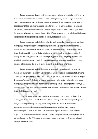 satuan jenjang PAUD. Secara khusus, tujuan bimbingan dan konseling di jenjang PAUD