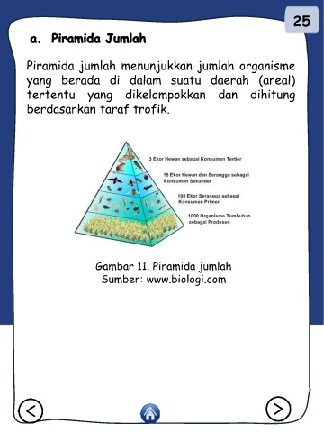25 Piramida jumlah menunjukkan jumlah organisme yang berada di dalam suatu daerah (areal) tertentu yang dikelompokkan dan dihitung berdasarkan taraf trofik. Gambar 11. Piramida jumlah Sumber: www.biologi.com