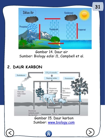 31 Gambar 14. Daur air Sumber: Biology edisi 11, Campbell et al. 2. DAUR KARBON Gambar 15. Daur karbon Sumber: www.biology.com