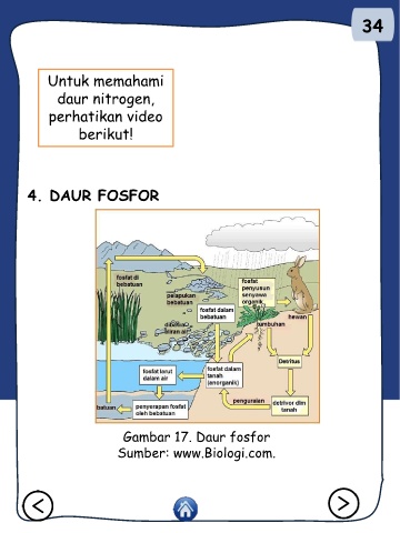 34 Untuk memahami daur nitrogen, perhatikan video berikut! 4. DAUR FOSFOR Gambar 17. Daur fosfor Sumber: www.Biologi.com.