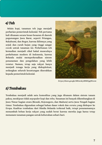 Employee HandbookSelain kopi, tanaman teh juga menjadiperhatian pemerintah kolonial. Teh pertamakali ditanam secara besar-besaran di daerahpegunungan Jawa Barat, seperti Priangan,Sukabumi, dan Bogor, karena iklimnya yangsejuk dan curah hujan yang tinggi sangatcocok untuk tanaman ini. Perkebunan tehkemudian menjadi cikal bakal munculnyaperkebunan modern di Indonesia, karenaBelanda mulai memperkenalkan sistempenanaman dan pengolahan yang lebihteratur. Namun, tetap saja rakyat hanyamenjadi tenaga kerja yang dieksploitasi,sedangkan seluruh keuntungan diserahkankepada pemerintah kolonial.4) TehTembakau menjadi salah satu komoditas yang juga ditanam dalam sistem tanampaksa, meskipun tidak sepopuler kopi dan tebu. Tanaman ini banyak dikembangkan diJawa Timur bagian utara (Besuki, Bojonegoro, dan Madura) serta Jawa Tengah bagiantimur. Tembakau digunakan sebagai bahan dasar rokok dan cerutu yang diekspor keEropa. Kualitas tembakau dari Hindia Belanda terkenal baik, tetapi penanamannyamenambah beban kerja rakyat yang sudah berat karena mereka juga harus tetapmenanam tanaman pangan untuk kebutuhan sehari-hari.5) Tembakauhttps://share.google/MKutxkyIRMGpgW6wm7