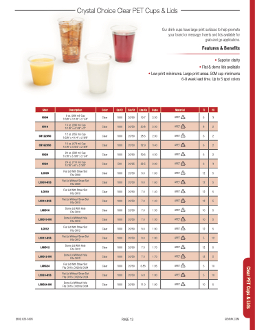 Our drink cups have large print surfaces to help promote your brand or message. Inserts and lids available for grab and go applications.