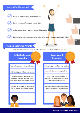 Recommendation posted on the intranet under the Catch Me at My Best page and in The Engine Room