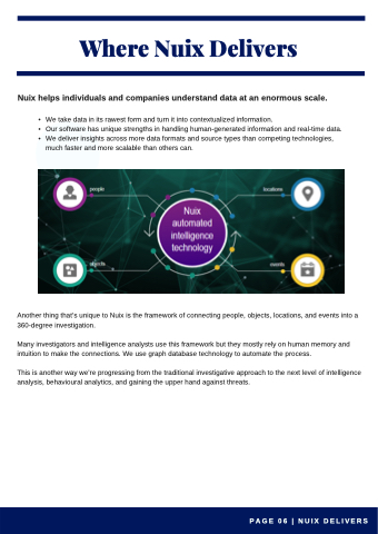 Another thing that’s unique to Nuix is the framework of connecting people, objects, locations, and events into a 360-degree investigation.