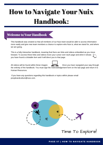 All videos will be found within these images: Once you have navigated your way through the entirety of the handbook. You must sign the Acknowledgement form on the last page and return it to Human Resources.
