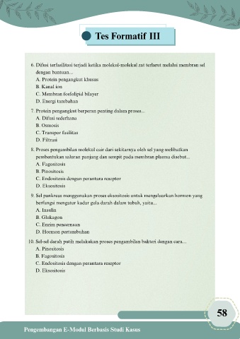 6. Difusi terfasilitasi terjadi ketika molekul-molekul zat terlarut melalui membran sel