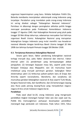 organisasi kepemimpinan yang baru. Melalui kebijakan Politik Etis,