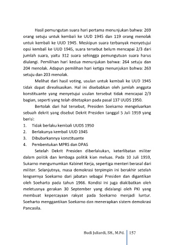untuk kembali ke UUD 1945. Meskipun suara terbanyak menyetujui