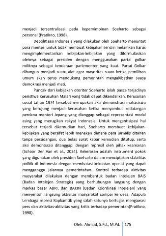 Depolitisasi Indonesia yang dilakukan oleh Soeharto menuntut