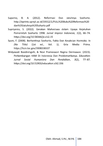 Suparno, B. A. (2012). Reformasi Dan Jatuhnya Soeharto.
