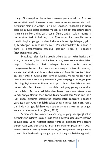 orang. Bila meyakini Islam telah masuk pada abad ke 7, maka