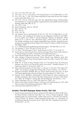 1. Sayyid ‘Utsman kepada Snouck, Batavia, 28 Syawal 1305, dalam LOr. 8952; AA III, 1844–