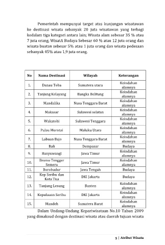 ke destinasi wisata sebanyak 20 juta wisatawan yang terbagi