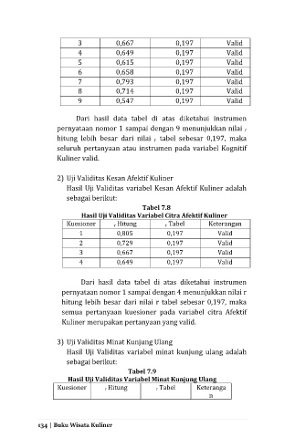 Hasil Uji Validitas variabel Kesan Afektif Kuliner adalah