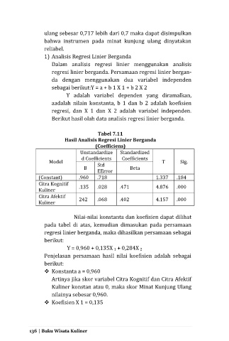 regresi linier berganda, maka dihasilkan persamaan sebagai