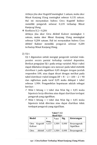 Artinya jika skor Citra Afektif Kuliner meningkat 1