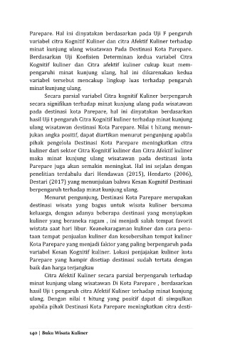 Citra Afektif Kuliner secara parsial berpengaruh terhadap