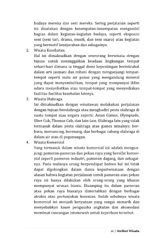 atraksi atau pertunjukan kesenian. Itulah sebabnya wisata