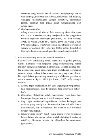 2. Faktor Pendorong Wisatawan untuk Berwisata